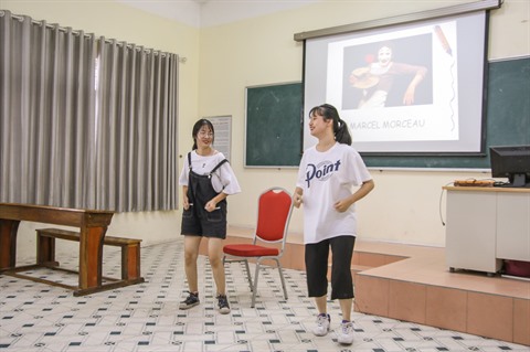 | Une équipe présente son spectacle lors de la deuxième phase des éliminations du concours "Expédition francophone" 2019, le 18 mai à Hanoï. |