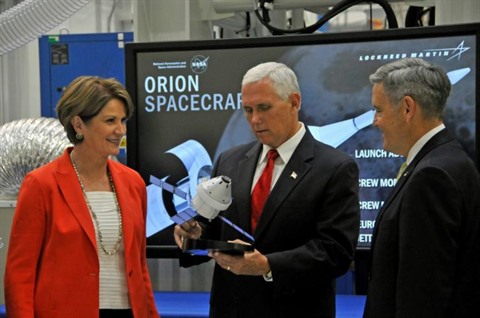 Récemment nommé à la tête du Conseil spatial national, un organe consultatif, Mike Pence a visité le Centre spatial Kennedy près de Cap Canaveral en Floride et observé les capsules spatiales en cours de construction par le secteur privé pour le compte de la NASA.