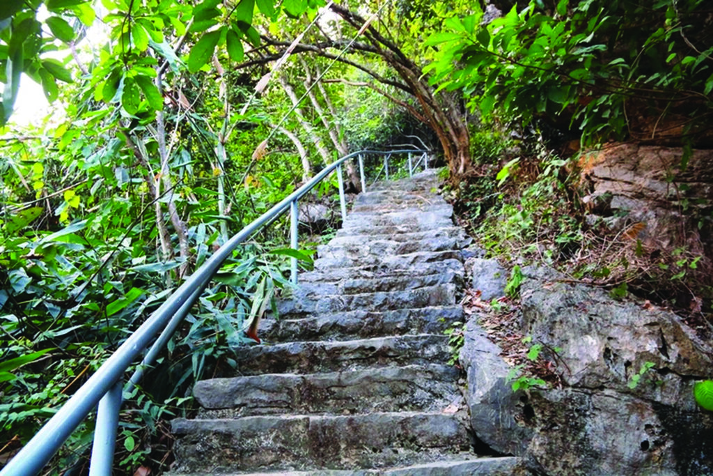 La porte du Ciel marque le point de rencontre symbolique entre le paradis, le monde des hommes et les enfers à l’intérieur de la grotte de Vai Gioi. De nombreux visiteurs s’y arrêtent pour prendre des photos. Depuis ce promontoire, le regard embrasse tout le paysage forestier de Thung Nham : des chaînes de montagnes superposées, ponctuées de maisons sur pilotis, composant un tableau à la fois vivant et enchanteur.