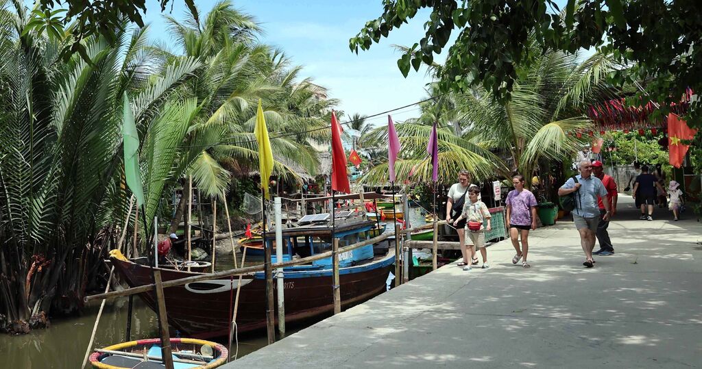 Des cyclistes glissent à travers les fermes de crevettes et les étangs de lotus, l'air empli du parfum du calamar grillé et du jacquier sucré. Et à mesure que le soleil descend, le fleuve Thu Bôn prend une teinte bronze, et le village expire.