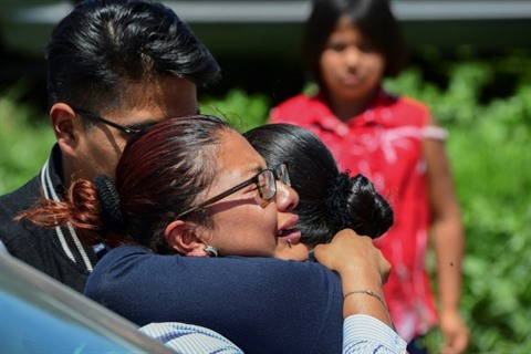 | Des proches des victimes sur le site des explosions qui ont détruit plusieurs entrepôts de feux d'artifice de Tultepec, au nord de Mexico, le 5 juillet. |