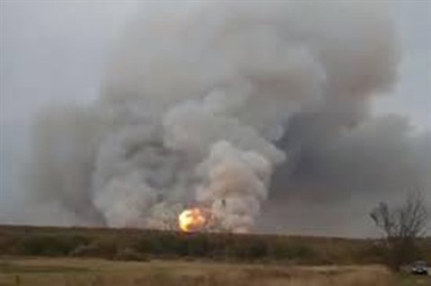 | La fumée est montée sur les lieux d'un incendie de munitions dans la région de Riazan, au banlieue de Moscou, en Russie, le 7 octobre. |