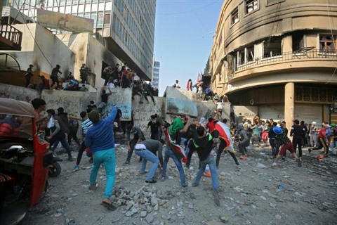 | Affrontements avec les forces de sécurité dans la rue al-Rasheed à Bagdad, le 26 novembre. |