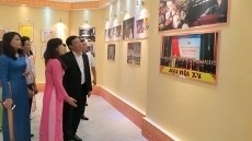 | L’exposition de photos «Avancer avec fierté sous le drapeau du Parti» attire les visiteurs. |