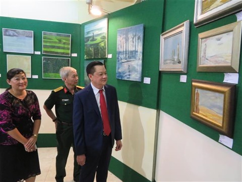 | Des visiteurs lors de l'exposition contemporaine de Hongrie le 14 novembre dans la ville de Cân Tho. |