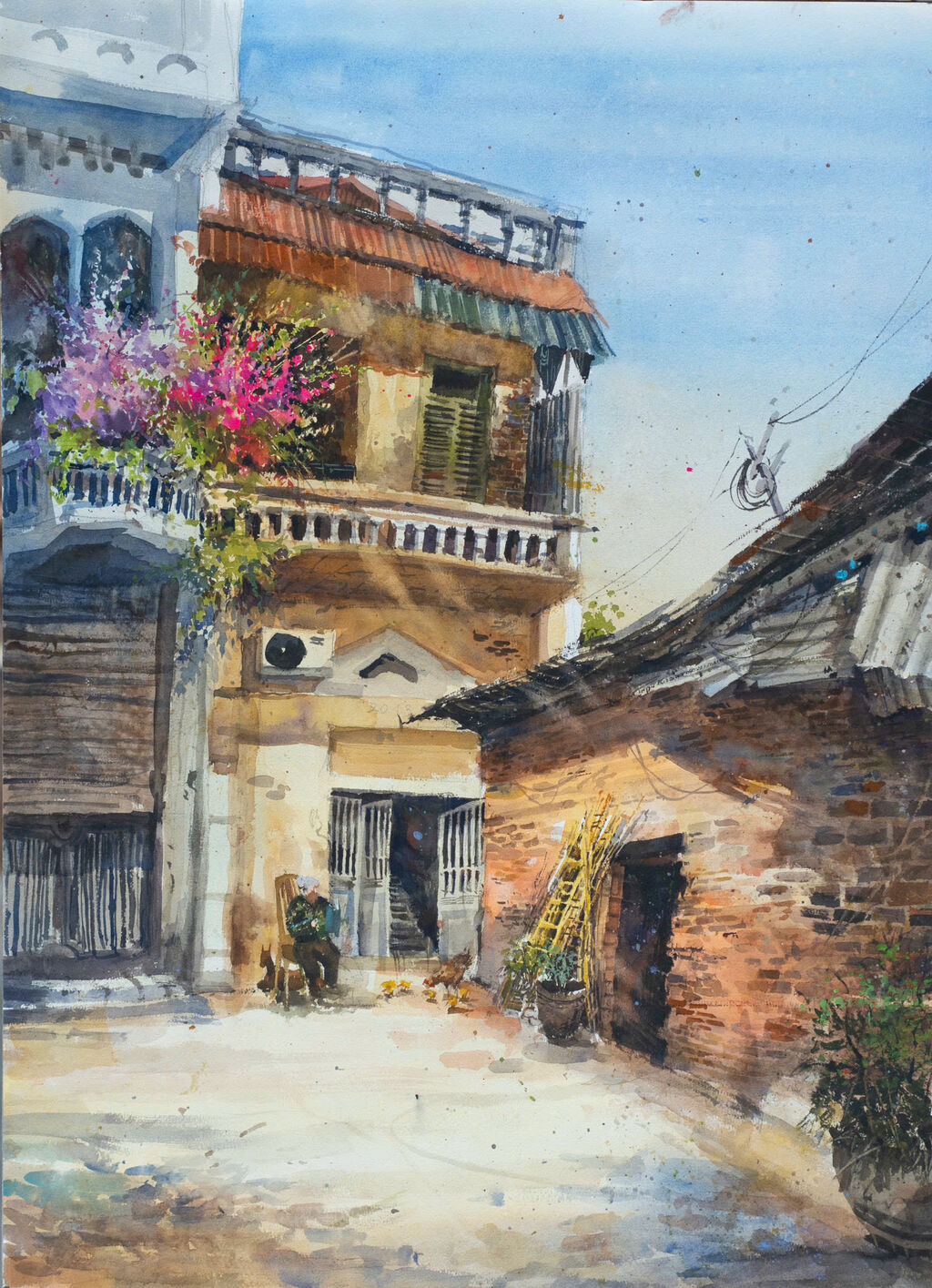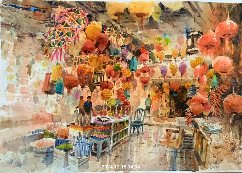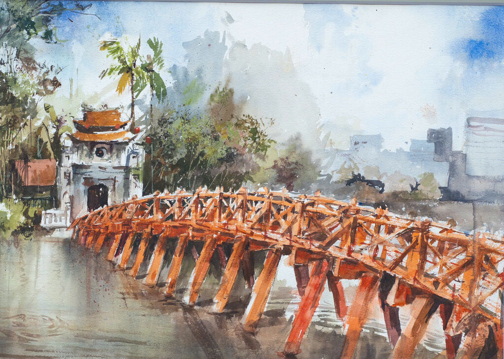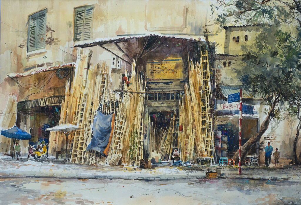 Depuis près de deux ans, Hai Nam pratique la peinture à l’aquarelle avec les membres du Club d’aquarelle de Hanoï. Il s’est également exercé dans les rues et ruelles de Hanoï et du Vieux quartier, tout en profitant des weekends pour visiter et croquer des villages de banlieue de la capitale.