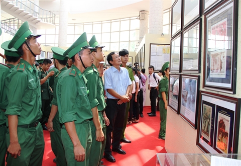 | Des soldats à l'exposition de cartes et d’archives sur Hoàng Sa et Truong Sa du Vietnam, le 17 mai à Tây Ninh (Sud). |