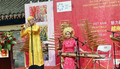 | Représentation de la musique traditionnelle lors de l'ouverture de l'exposition de peintures sur le Vietnam à Pékin. |