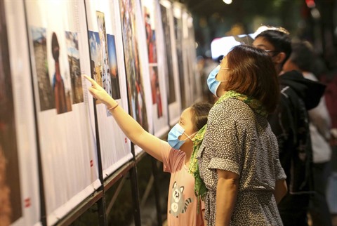 | De nombreux Hanoïens visitent l'exposition de photos de la presse mondiale 2020. |