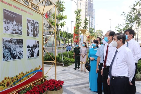 | Des autorités de Hô Chi Minh-Ville visitent l'exposition de photos. |