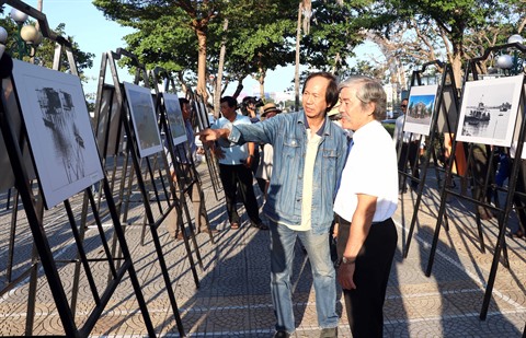 | L'exposition de photos sur les patrimoines culturels de Dà Nang attire beaucoup de visiteurs. |