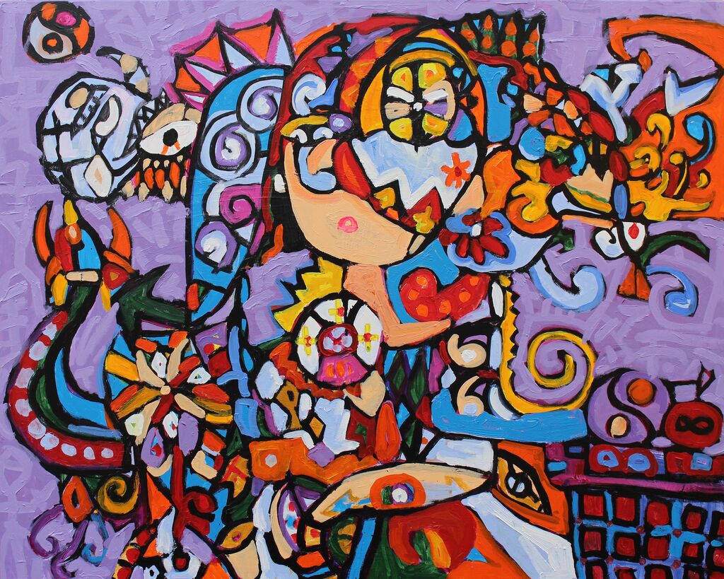 | Hoàng Nhât Quang devant une de ses peintures. |