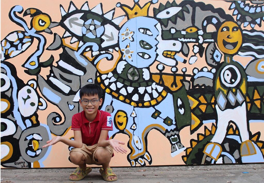 Hoàng Nhât Quang ne prépare pas d'idées ni de croquis. Parfois, en jouant avec des amis du quartier, il se met à peindre spontanément. Quang est très libre dans sa démarche artistique et dessine selon son inspiration.