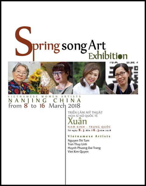 La délégation vietnamienne est composée des artistes Nguyên Thi Tâm, Trân Thuy Linh, Huynh Phuong Thi Dai Trang et Viêt Thi Kim Quyên, pour ce qui concerne les peintures à l'huile, acrylique et synthétique. Si la peintre Nguyên Thi Tâm aime dessiner les lotus, Viêt Thi Kim Quyên préfère les paysages. Alors que l'artiste Huynh Phuong Thi Dai traite le thème des fleurs et des arbres, la peintre Trân Thuy Linh suit l'école abstraites intitulée "le chemin de recherche de l'univers - l'ego humain".