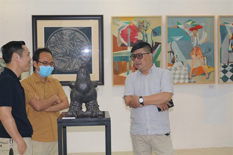 | Nguyên Van Minh (1er à droite), recteur de l'École des beaux-arts de Hô Chi Minh-Ville, lors de la cérémonie d’ouverture de l’exposition, le 25 janvier. |