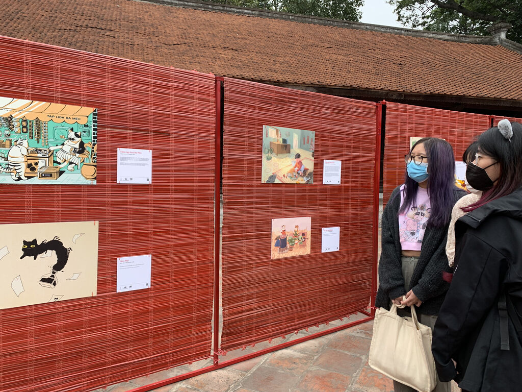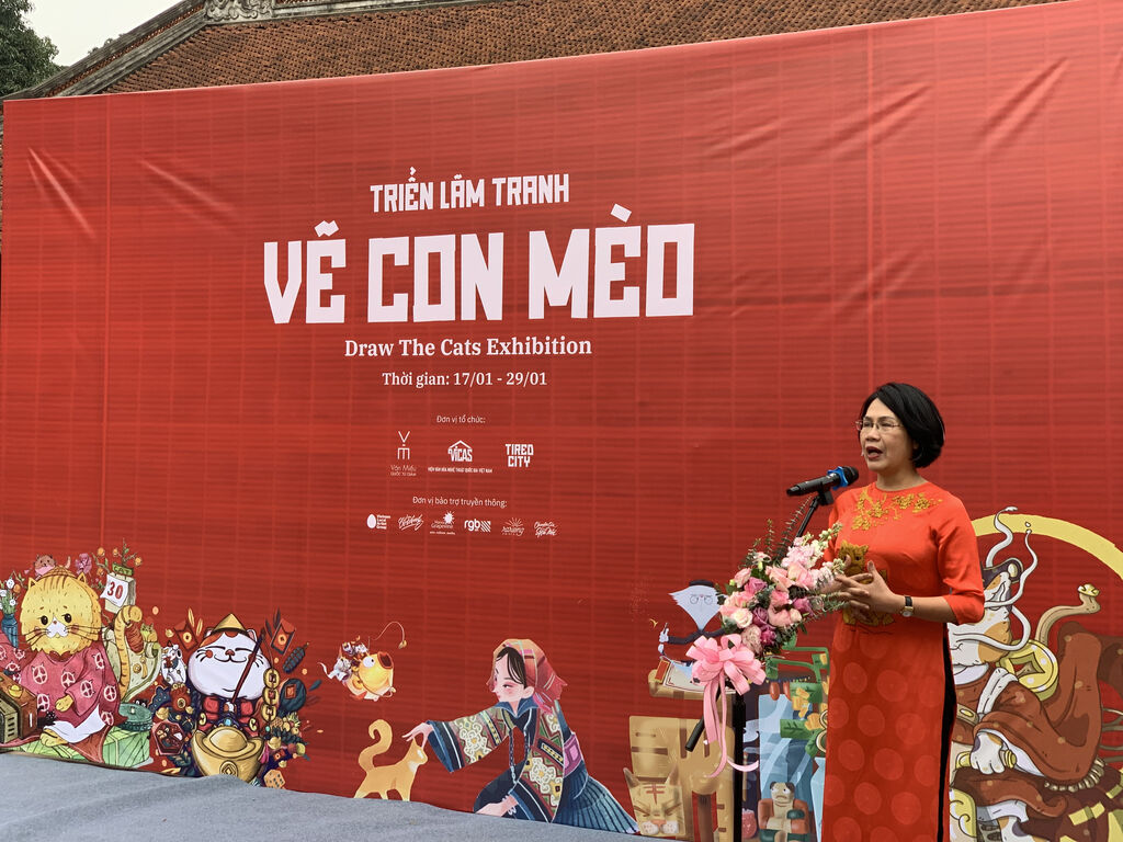 | L’exposition des dessins de chat s’ouvre le 17 janvier au Temple de la Littérature, à Hanoï. |