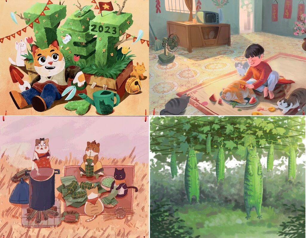 Cette manifestation présente 76 œuvres. "À travers l’angle, l'histoire et les nuances intéressantes du chat, un animal du zodiaque vietnamien de l’année lunaire 2023, les peintres souhaitent envoyer au public de meilleurs vœux pour une bonne nouvelle année", a affirmé la directrice du VICAS, Nguyên Thi Thu Phuong.