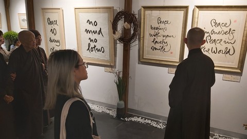 | Plusieurs œuvres calligraphiques du moine bouddhiste zen Thich Nhât Hanh présentées au public à Hô Chi Minh-Ville. |
