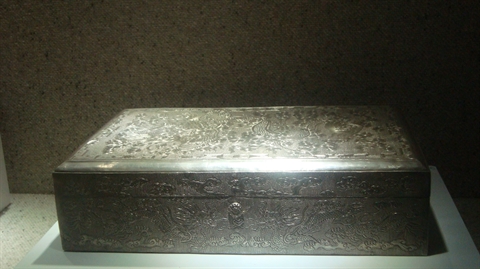| Coffret en argent de la dynastie des Nguyên, décoré de motifs de dragon. |
