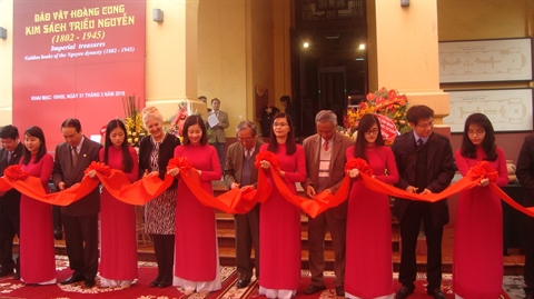 | Vernissage de l’exposition «Le trésor impérial – Livres en métaux précieux des Nguyên (1802-1945)», le 31 mars à Hanoi. |