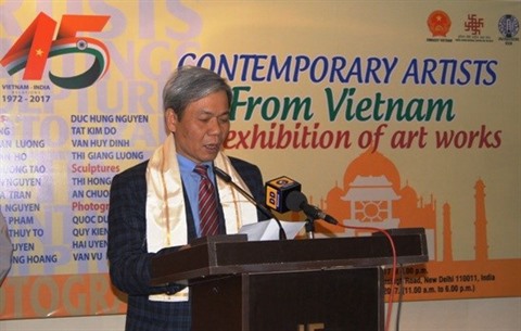 | L’ambassadeur du Vietnam en Inde, Tôn Sinh Thành, lors du vernissage de l’exposition d'œuvres d'art vietnamiennes, le 5 janvier en Inde. |