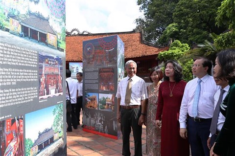 L’exposition "Hanoï-Huê-Saigon : tradition et développement" s’est ouverte lundi matin 9 octobre au Temple de la Littérature de Hanoï. Organisé par le ministère de la Culture, des Sports et du Tourisme, l'événement célèbre le 1010e anniversaire de Thang Long-Hanoï, le 60e anniversaire du jumelage Hanoï-Huê-Saigon et le 66e anniversaire de la libération de la capitale du Vietnam.