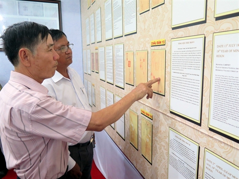 Les objets exposés comprennent d'anciens documents sur l'établissement et l'exercice de la souveraineté du Vietnam sur Hoàng Sa et Truong Sa, des documents royaux de la dynastie des Nguyên et des cartes occidentales montrant la souveraineté du Vietnam sur ces deux archipels.
