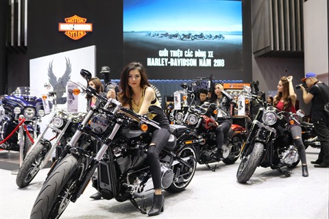 | Les modèles 2018 de Harley-Davidson sont présentés à l’exposition. |