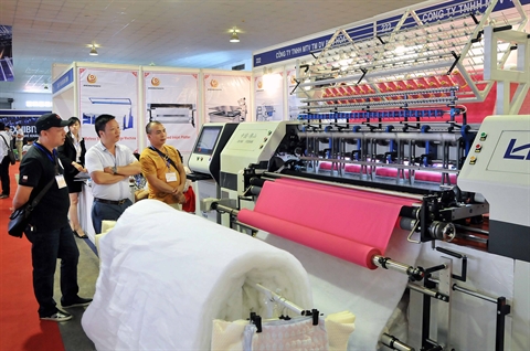 | Des machines présentées lors de la 15e exposition internationale de l'industrie du textile-habillement du Vietnam qui s'ouvre le 21 octobre à Hô Chi Minh-Ville. |