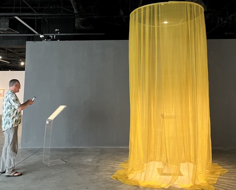 | L'œuvre de Nguyên Hoài Giang utilise un rideau de soie de 40 m. |