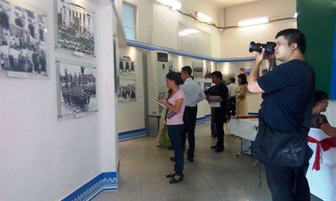 Le public peut notamment admirer des photos du soulèvement général à Hanoi en août 1945, du Président Hô Chi Minh prononçant la Proclamation d'indépendance sur la place Ba Dinh le 2 septembre 1945, d'habitants de la capitale accueillant les soldats venant libérer la capitale...