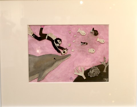 | Le dessin "Exploration de l'océan" de Nguyên Thanh présenté à l'exposition. |