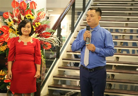| Nguyên Tuân Son, chef de l'atelier de peinture PicaSon, prononce son discours lors du vernissage de l'exposition "Rêve de sciences" à L'Espace, le 10 août. |