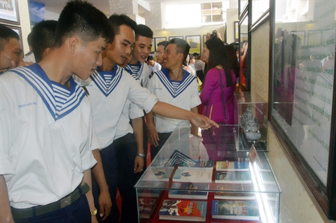 | Des soldats de la Marine à l'exposition "Hoàng Sa, Truong Sa du Vietnam-Les preuves historiques et juridiques", le 23 août à An Giang (Sud). |