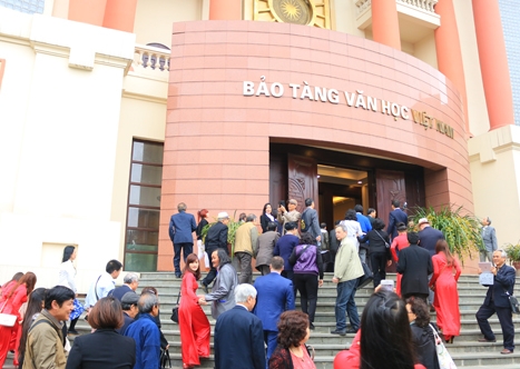 Les participants ont écouté une présentation d'objets exposés au Musée de la littérature du Vietnam, notamment l'espace consacré à la littérature vietnamienne avec les lecteurs étrangers. Selon les étrangers, le Vietnam figure parmi les rares pays du monde disposant d'un musée de la littérature. Le musée présente de manière complète les activités de la littérature vietnamienne et celle d'autres pays et territoires.