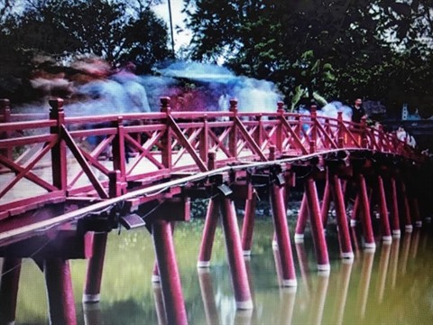 | Un cliché de Daniele Rossi sur le pont Thê Huc (pont du Soleil Levant) à Hanoï. |