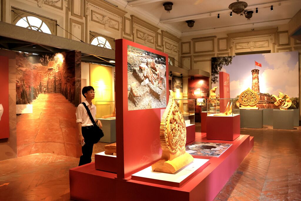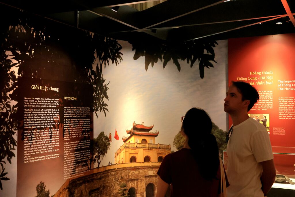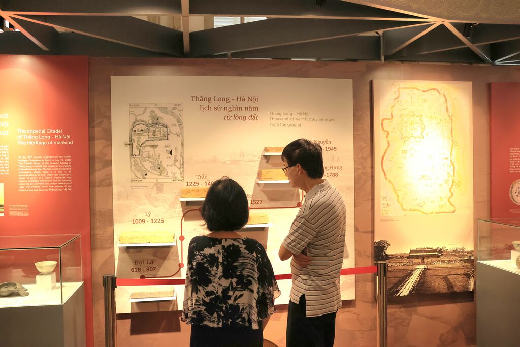 L'espace d'exposition "Citadelle impériale de Thang Long - Patrimoine pour l'avenir" comprend 150 documents, images et artefacts, répartis en trois thèmes. L'exposition présente 13 siècles d'histoire du site depuis les dynasties des Ly, Trân, Lê, Mac jusqu'à celle des Nguyên avec des artefacts associés à ces périodes tels que bols en céramique turquoise, pierre à encre en forme de carpe de la dynastie des Trân, vase à tilleul, coupe à tabac de celle des Lê,...