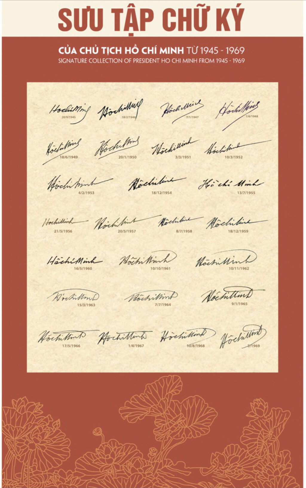 | Des signatures du Président Hô Chi Minh de 1945-1969. |