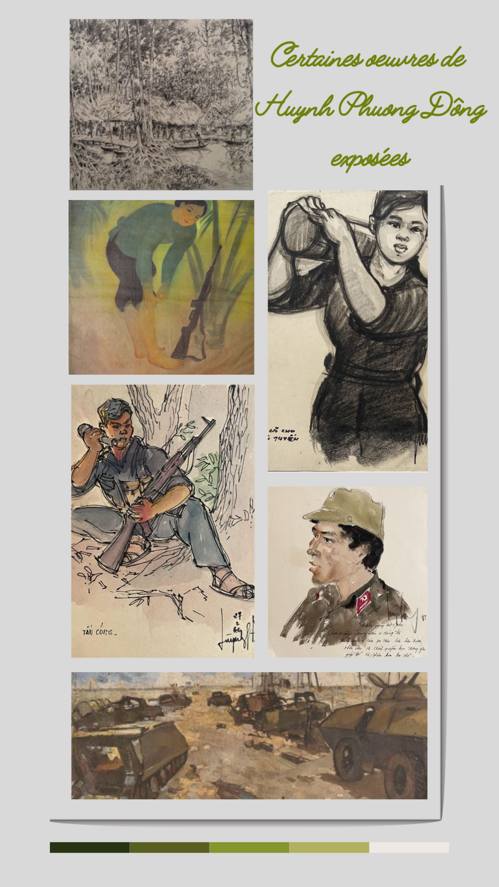 Les croquis de Huynh Phuong Dông sont devenus des témoignages précieux, bases pour ses grandes huiles retraçant des batailles historiques telles que celles du pont Chu Y et la libération de Lôc Ninh. Ses œuvres suscitent des émotions profondes et inoubliables sur la guerre, transportant les spectateurs au cœur de ces affrontements.