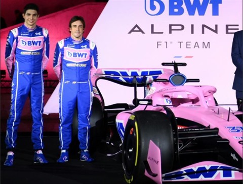 Témoignage encore plus appuyé au groupe de traitement d'eau autrichien, la livrée Alpine sera quasi entièrement rose lors des deux premiers Grands Prix de la saison, à Bahreïn (20 mars) puis en Arabie saoudite (27 mars).