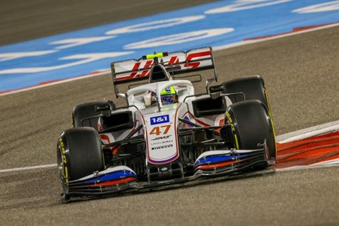 | Le pilote allemand Mick Schumacher, au volant de sa Haas, lors du Grand Prix de Bahreïn, le 28 mars sur le circuit international de Sakhir. |