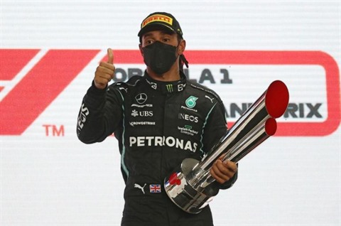 | Le pilote Mercedes, Lewis Hamilton, vainqueur du premier GP du Qatar sur le circuit international de Losail, le 21 novembre. |