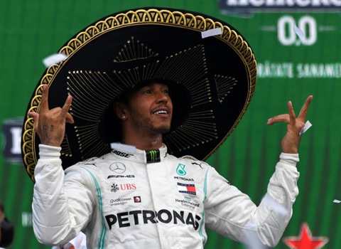 | Le Britannique Lewis Hamilton (Mercedes) vainqueur du GP du Mexique, le 27 octobre à Mexico. |