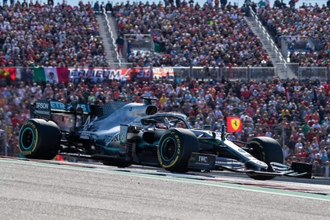 | Lewis Hamilton au volant de sa Mercedes lors du GP des États-Unis, à Austin, au Texas, le 3 novembre 2019. |
