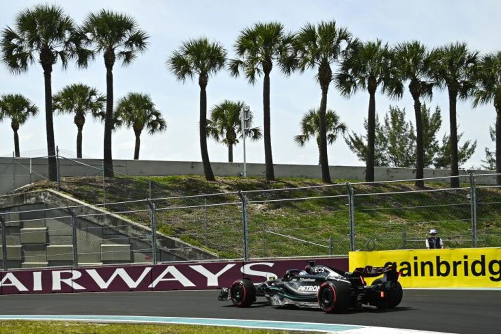 | Le Mercedes du pilote George Russell lors des essais du GP de Miami, le 5 mai 2023. |