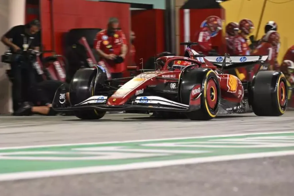 | Le Monégasque Charles Leclerc (Ferrari) sort des stands. |