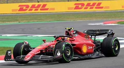 | Carlos Sainz Jr au volant de sa Ferrari lors des essais du GP de Grande-Bretagne sur le circuit de Silverstone, le 1er juillet. |