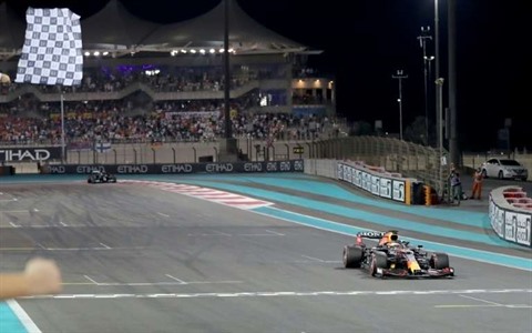 | Le pilote néerlandais Max Verstappen (Red Bull) remporte le Grand Prix d'Abou Dhabi devant le septuple champion du monde, le Britannique Lewis Hamilton (Mercedes) le 12 décembre. |