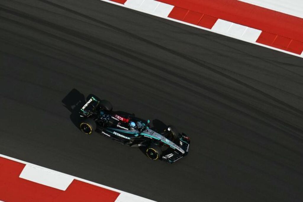 | La Mercedes du Britannique George Russell, le 18 octobre 2024 sur le circuit d'Austin, au Texas. |