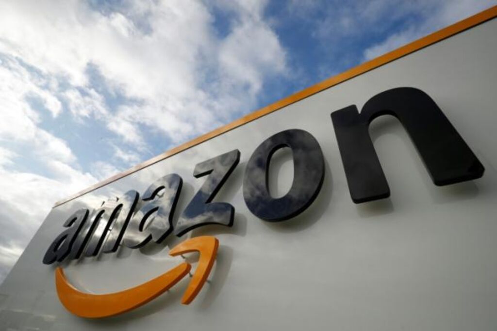 | Le logo d'Amazon est photographié sur la façade d'un bâtiment de l'entreprise à Brétigny-sur-Orge (France). |